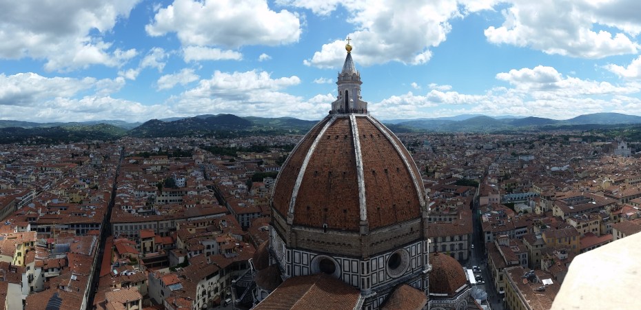 There was a cage over the walkway at the top, but it didn’t obstruct the view – or the wind. I had to worry more about seeing through my hair than the cage. Seeing the Duomo, and the rest of the city on into the countryside surrounding Florence, was breathtaking.